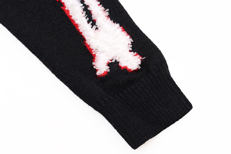 AMIRI Cotton V-Neck Bones Cardigan Sweater Black